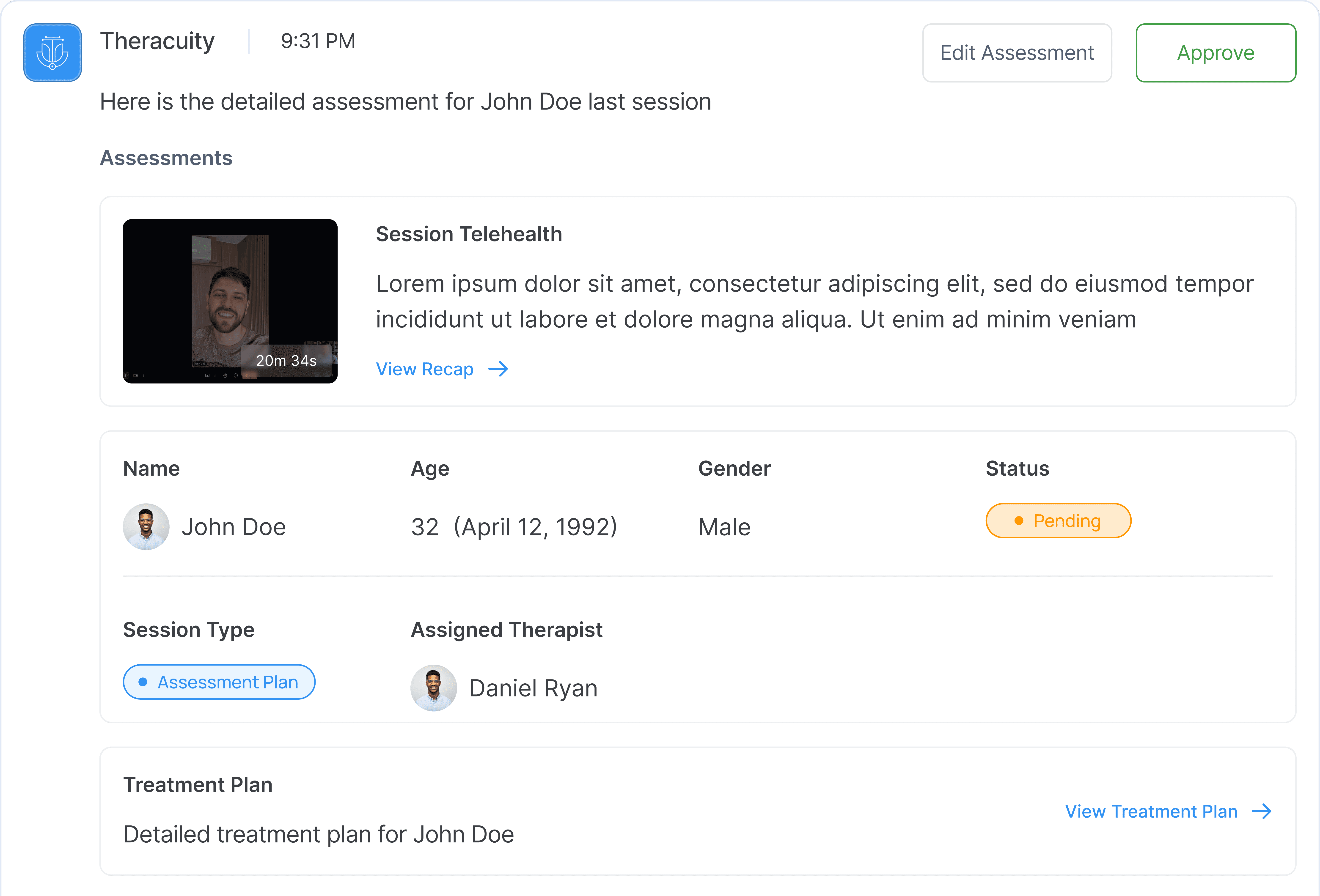 Theracuity is an AI-powered Electronic Health Records platform built specifically for behavioral health practitioners. The product brings patient management, documentation, scheduling, and telehealth into one streamlined experience, reducing the administrative load that often overwhelms therapists. At its core, Theracuity uses AI to assist with clinical documentation generating assessments, treatment plans, and progress notes while still giving clinicians full control and oversight. The MVP focused on creating a calm, intuitive environment where therapists could manage their daily workflow, review AI-drafted clinical documents, and access complete patient histories without switching between tools. By combining modern interface design with powerful AI capabilities, Theracuity aims to help therapists spend less time on paperwork and more time delivering meaningful care.