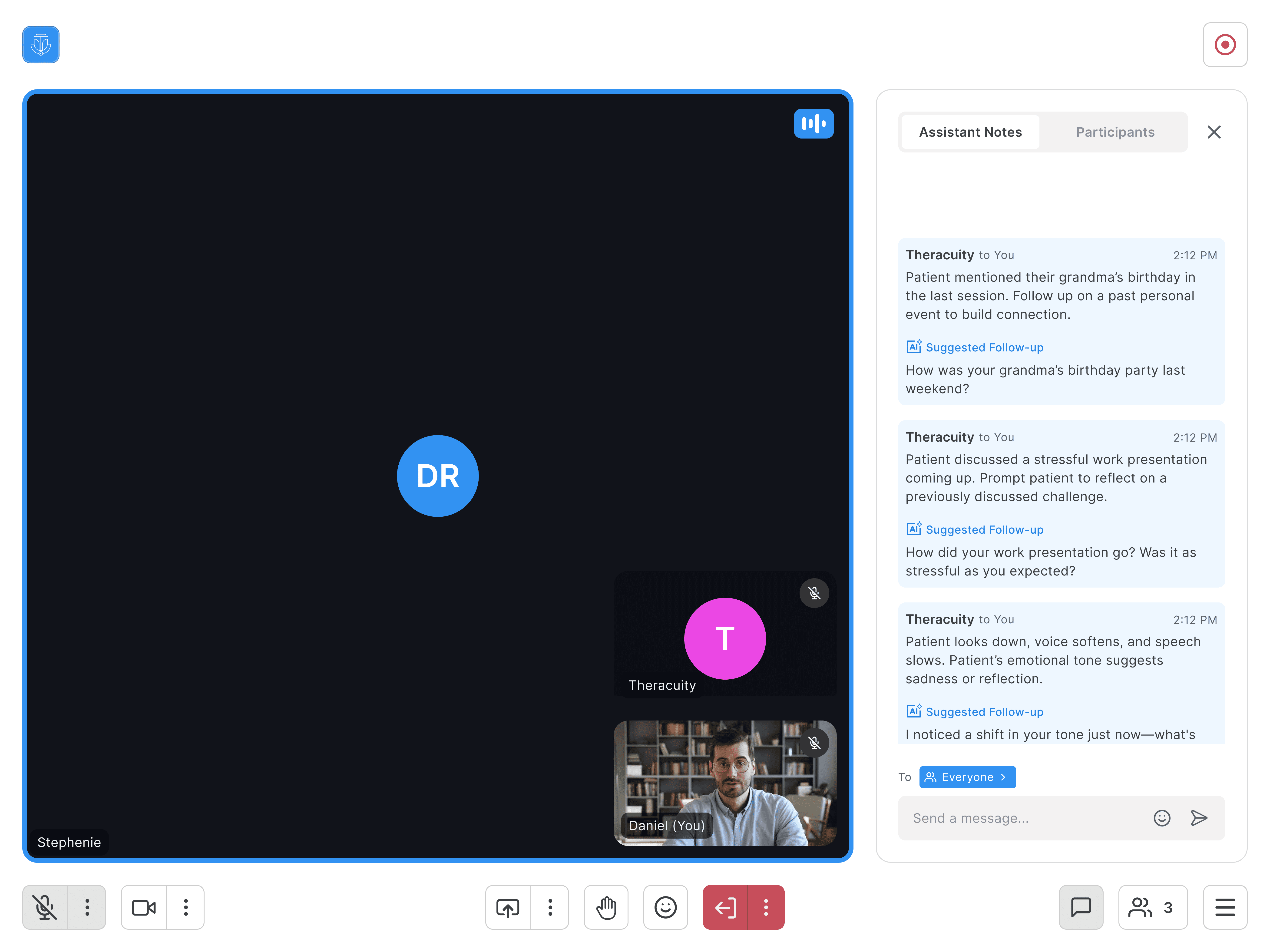Transforming the way therapists work by bringing intelligent documentation, patient management, and telehealth into one seamless experience. Theracuity supports clinicians with AI-generated notes, organized workflows, and a calm interface that makes every session easier to manage.